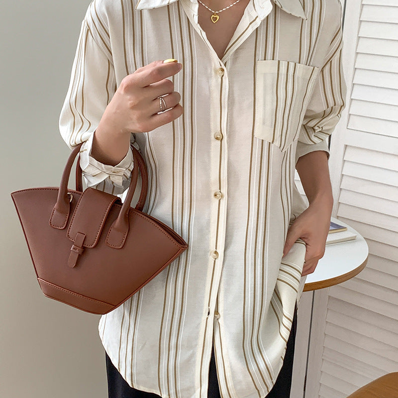 Large Capacity Hundred Korean Retro Fan Handbag Niche Design Personalised Crossbody Bag Colour White Grey Grey