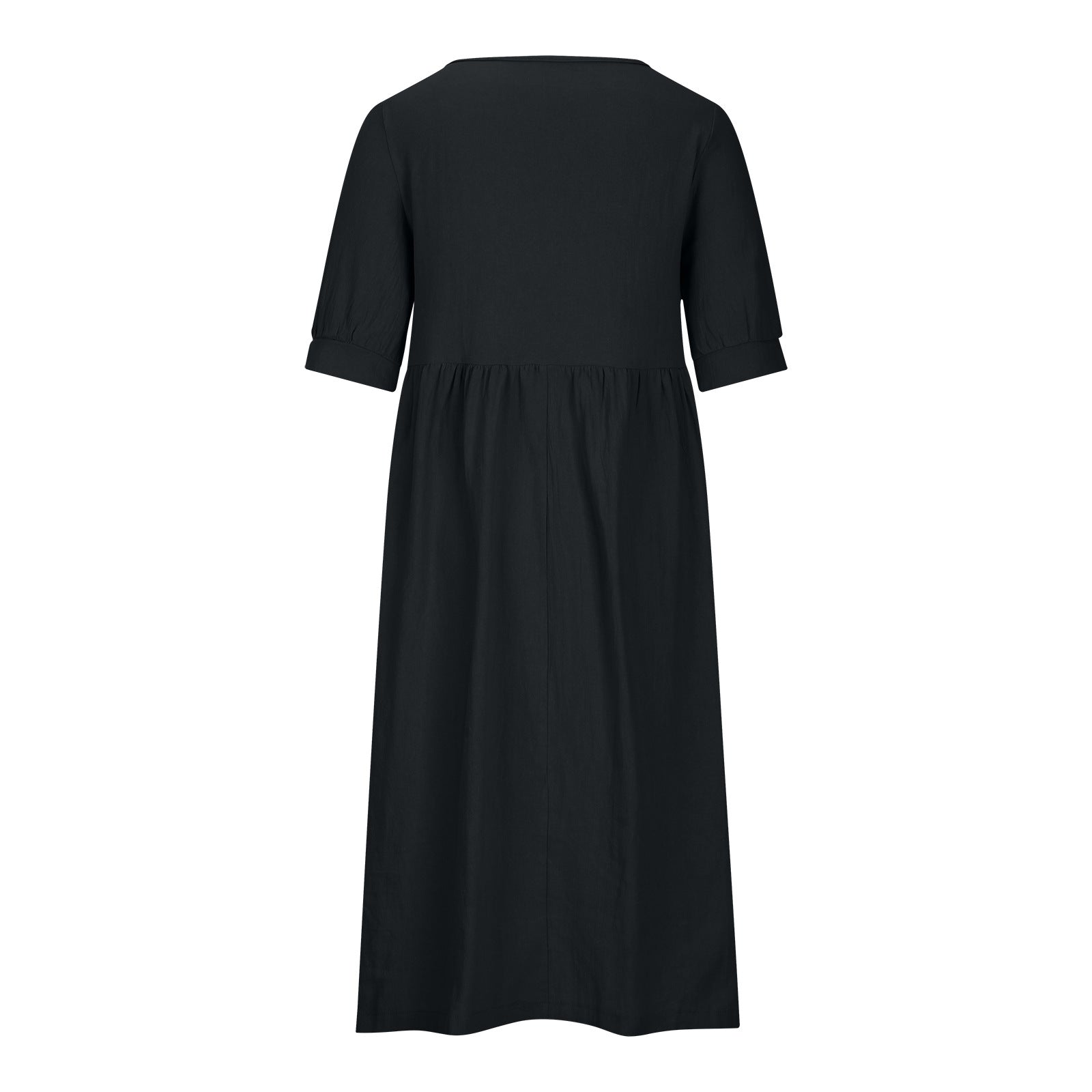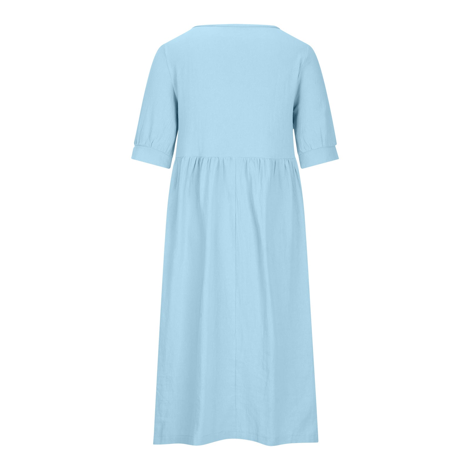 Solid Color Wide Elastic Waist Mid-Length Cotton and Linen Round Neck Dress Skinny